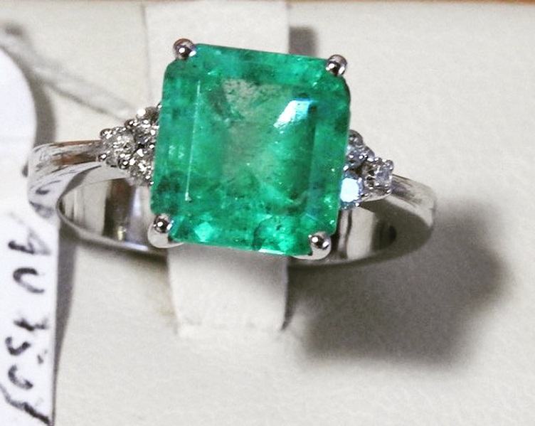anello d'oro bianco con ottagono di smeraldo e diamanti